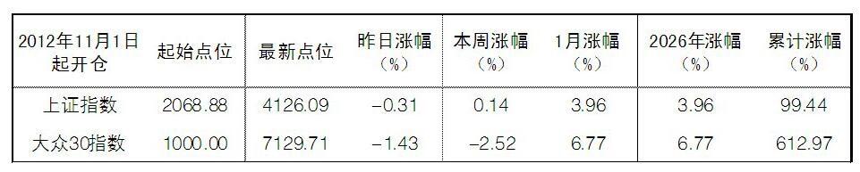 周四,大众30调仓换股。新选入盛达资源、锡业股份、中科星图,调出中国卫通、三花智控、中国人保。考虑到大盘短期震荡加大,策略性增加了稀缺资源、云服务行业的配置比例,调出了短线涨幅过大的题材股。